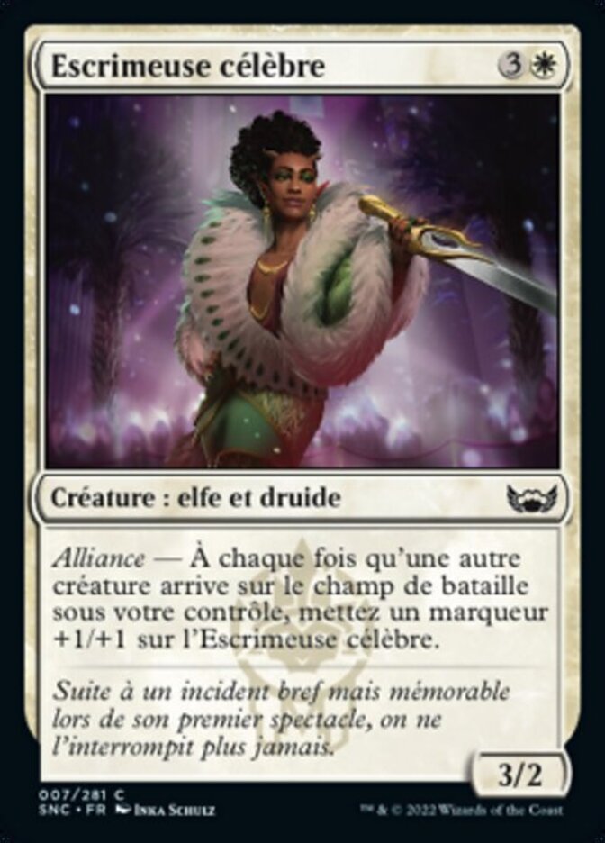 | Rules | Alliance — Whenever another creature enters the battlefield under your control, put a +1/+1 counter on Celebrity Fencer. |