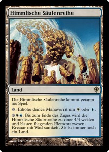 | Rules | Celestial Colonnade enters the battlefield tapped. : Add or . : Until end of turn, Celestial Colonnade becomes a 4/4 white and blue Elemental creature with flying and vigilance. It's still a land. |