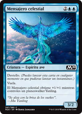 | Rules | Flash (You may cast this card any time you could cast an instant.) Flying Celestial Messenger gets +1/+1 as long as you control a Yanling planeswalker. |