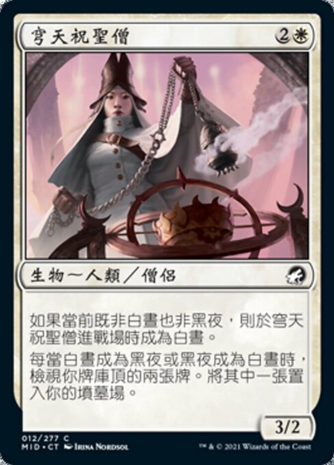| Rules | If it's neither day nor night, it becomes day as Celestus Sanctifier enters the battlefield. Whenever day becomes night or night becomes day, look at the top two cards of your library. Put one of them into your graveyard. |