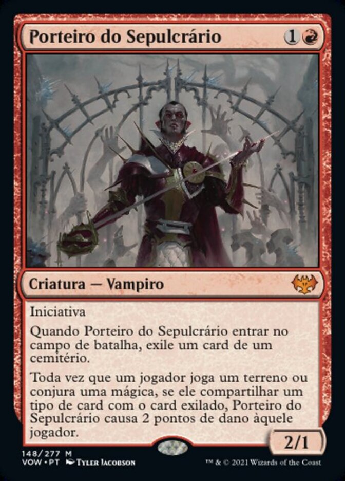 | Rules | First strike When Cemetery Gatekeeper enters the battlefield, exile a card from a graveyard. Whenever a player plays a land or casts a spell, if it shares a card type with the exiled card, Cemetery Gatekeeper deals 2 damage to that player. |