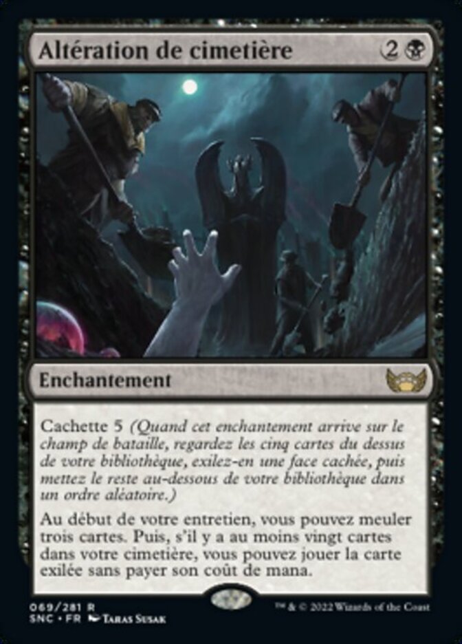 | Rules | Hideaway 5 (When this enchantment enters the battlefield, look at the top five cards of your library, exile one face down, then put the rest on the bottom in a random order.) At the beginning of your upkeep, you may mill three cards. Then if there are twenty or more cards in your graveyard, you may play the exiled card without paying its mana cost. |