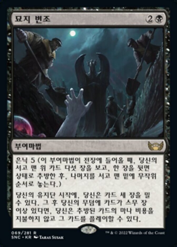 | Rules | Hideaway 5 (When this enchantment enters the battlefield, look at the top five cards of your library, exile one face down, then put the rest on the bottom in a random order.) At the beginning of your upkeep, you may mill three cards. Then if there are twenty or more cards in your graveyard, you may play the exiled card without paying its mana cost. |
