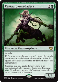 | Rules | Trample Centaur Vinecrasher enters the battlefield with a number of +1/+1 counters on it equal to the number of land cards in all graveyards. Whenever a land card is put into a graveyard from anywhere, you may pay . If you do, return Centaur Vinecrasher from your graveyard to your hand. |