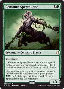| Rules | Trample Centaur Vinecrasher enters the battlefield with a number of +1/+1 counters on it equal to the number of land cards in all graveyards. Whenever a land card is put into a graveyard from anywhere, you may pay . If you do, return Centaur Vinecrasher from your graveyard to your hand. |