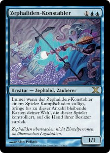 | Rules | Whenever Cephalid Constable deals combat damage to a player, return up to that many target permanents that player controls to their owner's hand. |
