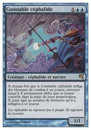 | Rules | Whenever Cephalid Constable deals combat damage to a player, return up to that many target permanents that player controls to their owner's hand. |