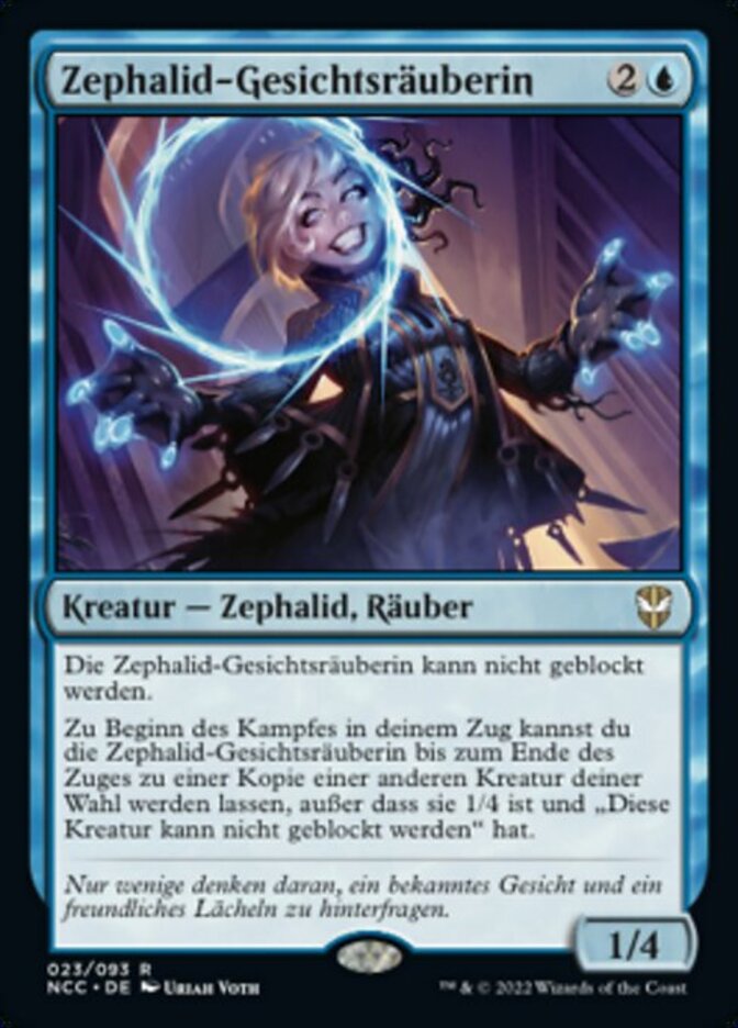 | Rules | Cephalid Facetaker can't be blocked. At the beginning of combat on your turn, you may have Cephalid Facetaker become a copy of another target creature until end of turn, except its a 1/4 and has "This creature can't be blocked." |