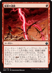 | Rules | Chain Lightning deals 3 damage to any target. Then that player or that permanent's controller may pay . If the player does, they may copy this spell and may choose a new target for that copy. |