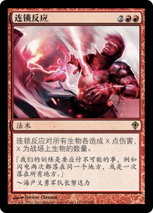 | Rules | Chain Reaction deals X damage to each creature, where X is the number of creatures on the battlefield. |