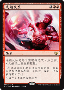 | Rules | Chain Reaction deals X damage to each creature, where X is the number of creatures on the battlefield. |