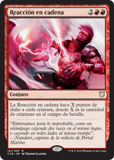 | Rules | Chain Reaction deals X damage to each creature, where X is the number of creatures on the battlefield. |