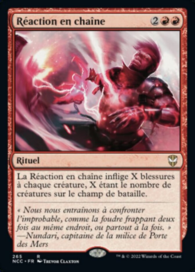 | Rules | Chain Reaction deals X damage to each creature, where X is the number of creatures on the battlefield. |