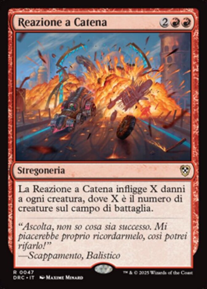 | Rules | Chain Reaction deals X damage to each creature, where X is the number of creatures on the battlefield. |