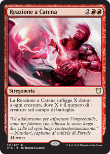 | Rules | Chain Reaction deals X damage to each creature, where X is the number of creatures on the battlefield. |