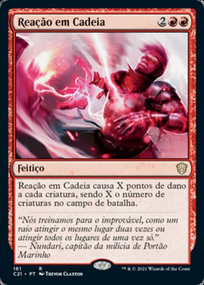 | Rules | Chain Reaction deals X damage to each creature, where X is the number of creatures on the battlefield. |