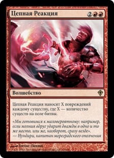 | Rules | Chain Reaction deals X damage to each creature, where X is the number of creatures on the battlefield. |