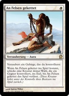 | Rules | Enchant Mountain you control When Chained to the Rocks enters the battlefield, exile target creature an opponent controls until Chained to the Rocks leaves the battlefield. (That creature returns under its owner's control.) |