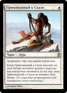 | Rules | Enchant Mountain you control When Chained to the Rocks enters the battlefield, exile target creature an opponent controls until Chained to the Rocks leaves the battlefield. (That creature returns under its owner's control.) |