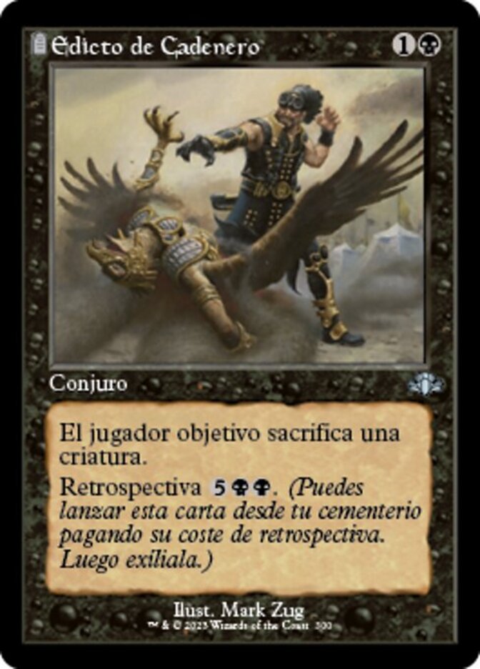 | Rules | Target player sacrifices a creature. Flashback (You may cast this card from your graveyard for its flashback cost. Then exile it.) |