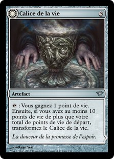 | Rules | : You gain 1 life. Then if you have at least 10 life more than your starting life total, transform Chalice of Life. // : Target player loses 5 life. |