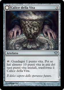 | Rules | : You gain 1 life. Then if you have at least 10 life more than your starting life total, transform Chalice of Life. // : Target player loses 5 life. |