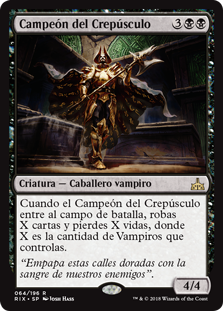 Rules When Champion of Dusk enters the battlefield, you draw X cards and you lose X life, where X is the number of Vampires you control.