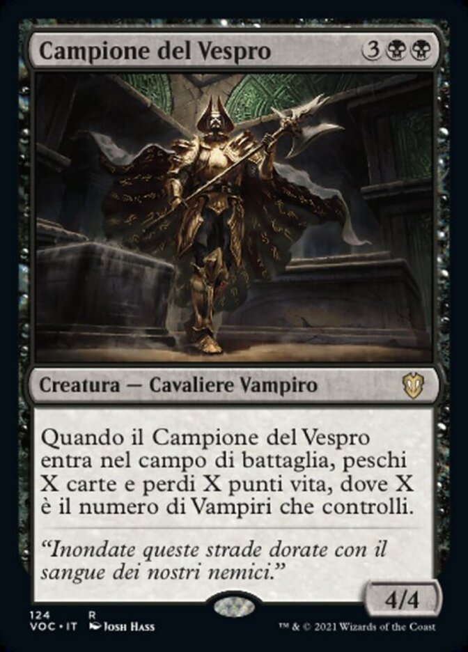 Rules When Champion of Dusk enters the battlefield, you draw X cards and you lose X life, where X is the number of Vampires you control.