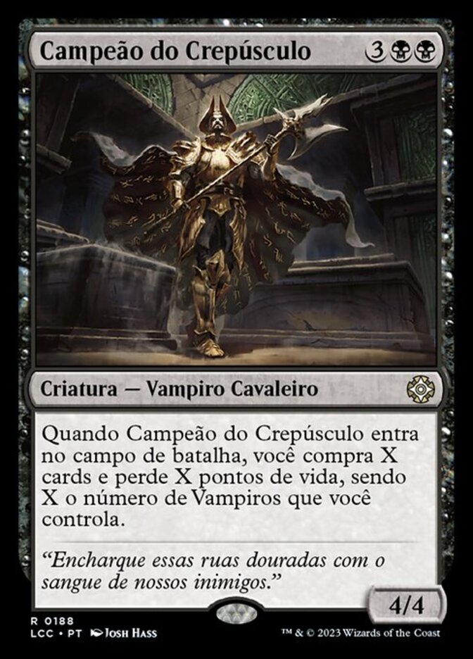 | Rules | When Champion of Dusk enters the battlefield, you draw X cards and you lose X life, where X is the number of Vampires you control. |