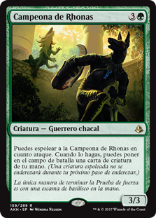Rules You may exert Champion of Rhonas as it attacks. When you do, you may put a creature card from your hand onto the battlefield. (An exerted creature won't untap during your next untap step.)