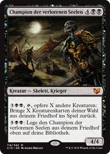 | Rules | , , Sacrifice X other creatures: Return X target creature cards from your graveyard to the battlefield. : Put Champion of Stray Souls on top of your library from your graveyard. |