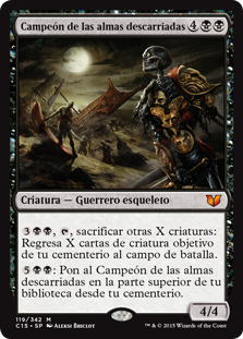| Rules | , , Sacrifice X other creatures: Return X target creature cards from your graveyard to the battlefield. : Put Champion of Stray Souls on top of your library from your graveyard. |