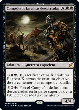 | Rules | , , Sacrifice X other creatures: Return X target creature cards from your graveyard to the battlefield. : Put Champion of Stray Souls on top of your library from your graveyard. |