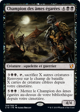 | Rules | , , Sacrifice X other creatures: Return X target creature cards from your graveyard to the battlefield. : Put Champion of Stray Souls on top of your library from your graveyard. |