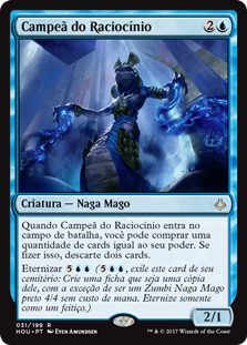 | Rules | When Champion of Wits enters the battlefield, you may draw cards equal to its power. If you do, discard two cards. Eternalize (, Exile this card from your graveyard: Create a token that's a copy of it, except it's a 4/4 black Zombie Naga Wizard with no mana cost. Eternalize only as a sorcery.) |