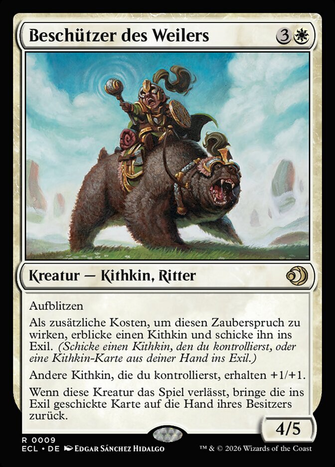 | Rules | Flash As an additional cost to cast this spell, behold a Kithkin and exile it. (Exile a Kithkin you control or a Kithkin card from your hand.) Other Kithkin you control get +1/+1. When this creature leaves the battlefield, return the exiled card to its owner's hand. |