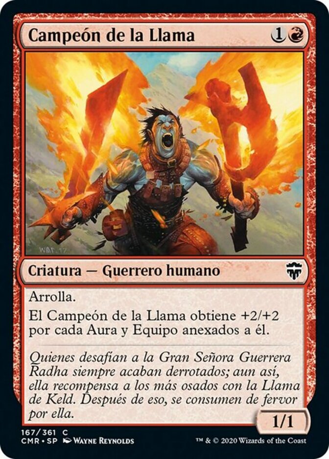 | Rules | Trample Champion of the Flame gets +2/+2 for each Aura and Equipment attached to it. |