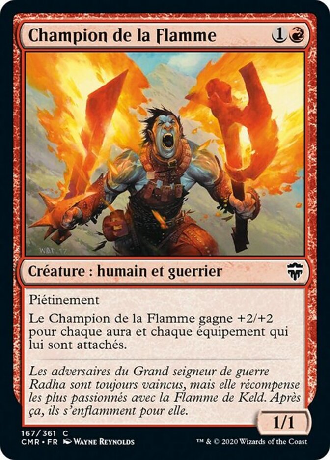 | Rules | Trample Champion of the Flame gets +2/+2 for each Aura and Equipment attached to it. |