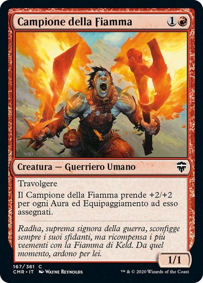 | Rules | Trample Champion of the Flame gets +2/+2 for each Aura and Equipment attached to it. |