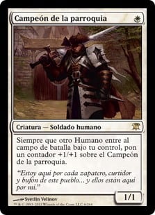 | Rules | Whenever another Human enters the battlefield under your control, put a +1/+1 counter on Champion of the Parish. |