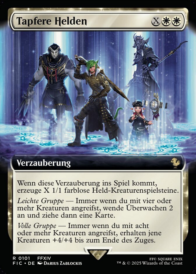 | Rules | When this enchantment enters, create X 1/1 colorless Hero creature tokens. Light Party — Whenever you attack with four or more creatures, scry 2, then draw a card. Full Party — Whenever you attack with eight or more creatures, those creatures get +4/+4 until end of turn. |