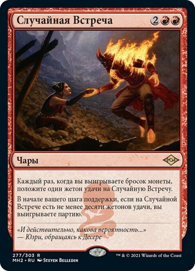 | Rules | Whenever you win a coin flip, put a luck counter on Chance Encounter. At the beginning of your upkeep, if Chance Encounter has ten or more luck counters on it, you win the game. |