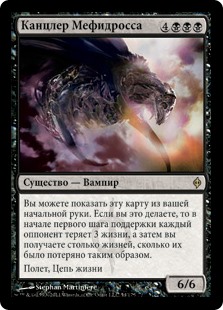 | Rules | You may reveal this card from your opening hand. If you do, at the beginning of the first upkeep, each opponent loses 3 life, then you gain life equal to the life lost this way. Flying, lifelink |