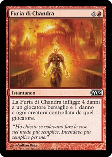 | Rules | Chandra's Fury deals 4 damage to target player or planeswalker and 1 damage to each creature that player or that planeswalker's controller controls. |
