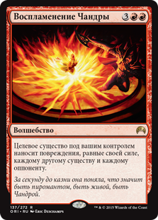 | Rules | Target creature you control deals damage equal to its power to each other creature and each opponent. |