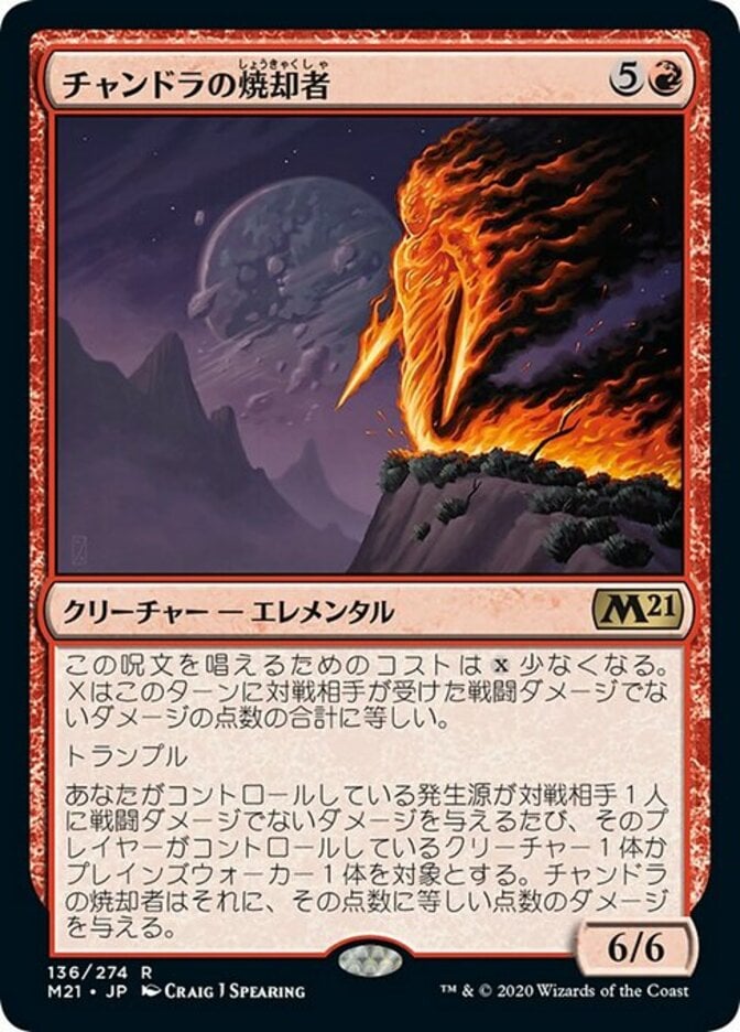 | Rules | This spell costs less to cast, where X is the total amount of noncombat damage dealt to your opponents this turn. Trample Whenever a source you control deals noncombat damage to an opponent, Chandra's Incinerator deals that much damage to target creature or planeswalker that player controls. |
