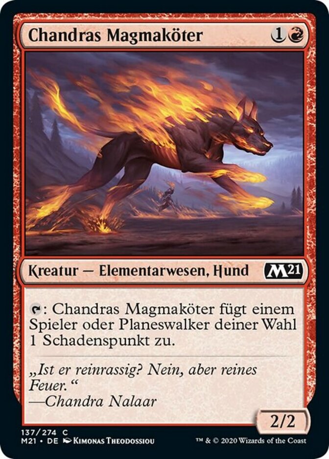 | Rules | : Chandra's Magmutt deals 1 damage to target player or planeswalker. |