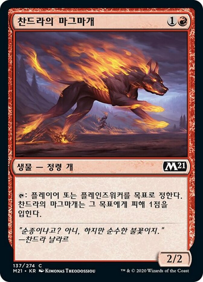 | Rules | : Chandra's Magmutt deals 1 damage to target player or planeswalker. |