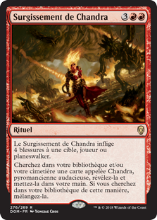 | Rules | Chandra's Outburst deals 4 damage to target player or planeswalker. Search your library and/or graveyard for a card named Chandra, Bold Pyromancer, reveal it, and put it into your hand. If you search your library this way, shuffle. |