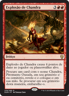 | Rules | Chandra's Outburst deals 4 damage to target player or planeswalker. Search your library and/or graveyard for a card named Chandra, Bold Pyromancer, reveal it, and put it into your hand. If you search your library this way, shuffle. |